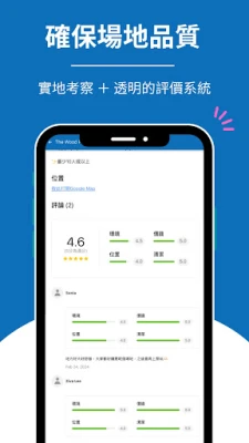 - 不時的實地考察 + 透明的評價系統,確保場地品質