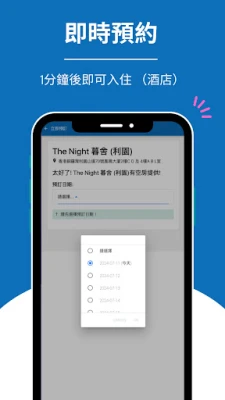 - 部分場地(酒店)支持即時預約,1分鐘後即可入住,並可享受現金回贈