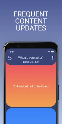 You and your friends will discuss outrageous hypothetical situations, moral dilemmas, provocative questions and make tough decisions. The game will save you from boring everyday conversations and situations when you get together in a group and the dialogue doesn’t go well.