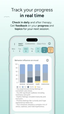 Get Data – See Daily, Weekly & Monthly summaries with your therapy progress analysis, insights & questions to ask on your next session.