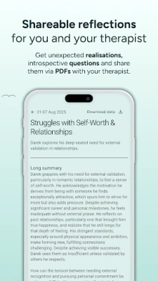 Shareable Summaries – Send PDF insights to your therapist, so you can work together on your outcomes.