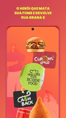 Herói de verdade! O Robin Food é um aplicativo de delivery que devolve sua grana. Você escolhe o restaurante, faz seu pedido em casa e recebe de volta parte da grana que você pagou. Ela é convertida em crédito pra você usar nos próximos pedidos. Baixa o Robin aí ;)