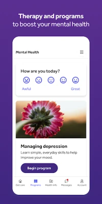 Our app brings together doctors, therapists, dietitians, nurses, coaches and self-guided programs that tend to every aspect of your well-being. If you need in-person care, we can refer you to in-network providers and care sites. But don’t underestimate us. The