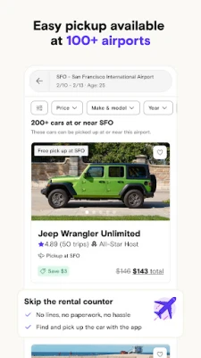 Whether you’re flying in from afar or looking for a car down the street, you can skip the rental car counter, choose from an extraordinary selection of vehicles shared by local hosts, and rent the best car for your trip, then you can pick it up at a convenient location near you or your destination.